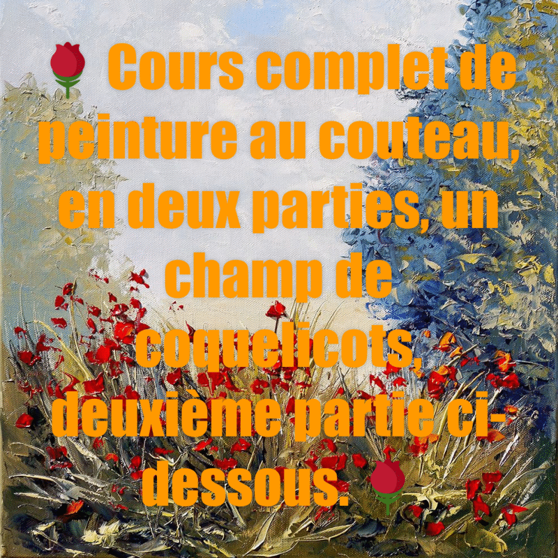 Dessin et peinture - vidéo 3868 : Comment peindre des coquelicots dans un champ 1/2 ? - huile ou acrylique au couteau de peintre.
